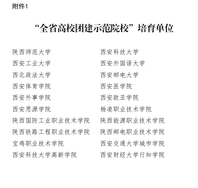 近日,共青团陕西省委、中共陕西省委教育工委公布了全省高校团建示范院校、标杆院系、样板支部培育单位名单,我校入选全省高校团建示范院校”培育单位。此外,水利工程学院分团委、生态环境工程学院分团委入选“全省高校团建标杆院系”培育单位;水利水电建筑工程20189班团支班、人力资源管理20011班团支部、汽车制造与试验技术20037班团支部入选“全省高校团建样板支部”培育单位。