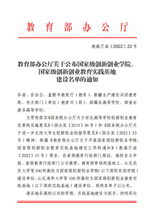 8月31日,教育部公布了国家级创新创业学院、国家级创新创业教育实践基地建设名单,杨凌职业技术学院入选国家级创新创业实践基地立项建设单位,为陕西省唯一入选的高职院校。