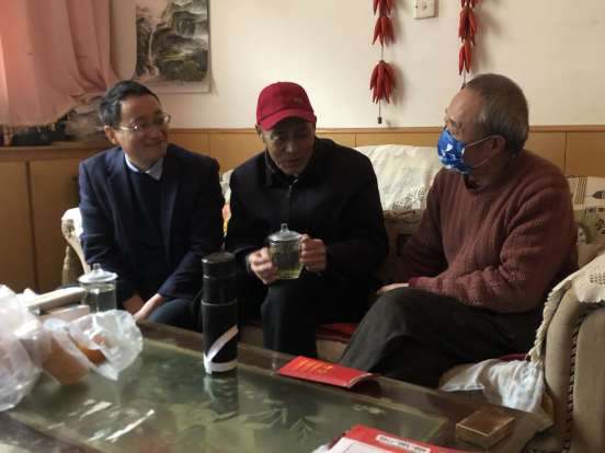 在走访慰问过程中,每到一户都与老党员们进行促膝交谈,详细询问其身体和生活状况,传达学校党委对老党员的关心关怀,征求党员对学校离退休党建及服务工作的意见和建议,认真倾听他们的心声,并叮嘱老党员保重身体、安度晚年。走访慰问中,还为今年党龄50年的五名老党员分别颁发了“光荣在党50年”纪念章,代表教育厅为身患重病生活特别困难的一名老党员送去了慰问金。