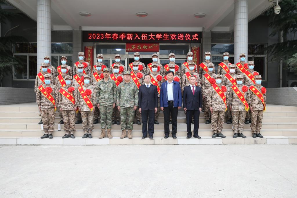 3月15日下午,2023年春季我校入伍大学生欢送仪式在陕西征程国防教育基地举行。副校长张朝晖、学工部部长陈军峰,杨陵区人武部部长李正文、政委任建卫及部分入伍学生家长等,共同欢送我校从杨凌入伍的30名新兵。
