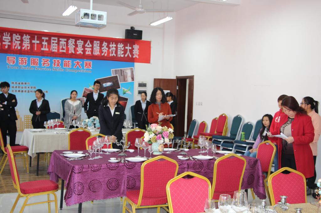 旅游与管理分院承办了物业管理服务技能大赛、西餐宴会服务技能大赛、中餐宴会主题设计技能大赛、英语写作(专业组)技能大赛、英语口语(专业组)技能大赛、英语导游技能大赛、导游服务技能大赛共7个赛项。整个大赛准备充分,教师辅导到位,学生训练扎实。大赛以大一学生为主体,部分大二、大三学生参与,通过“以老带新”的模式,让大一学生较早适应竞赛环境、熟悉竞赛规则、了解竞赛流程,以“国赛化”、“实战化”的标准来要求,为以后的省赛、国赛选拔做好准备。