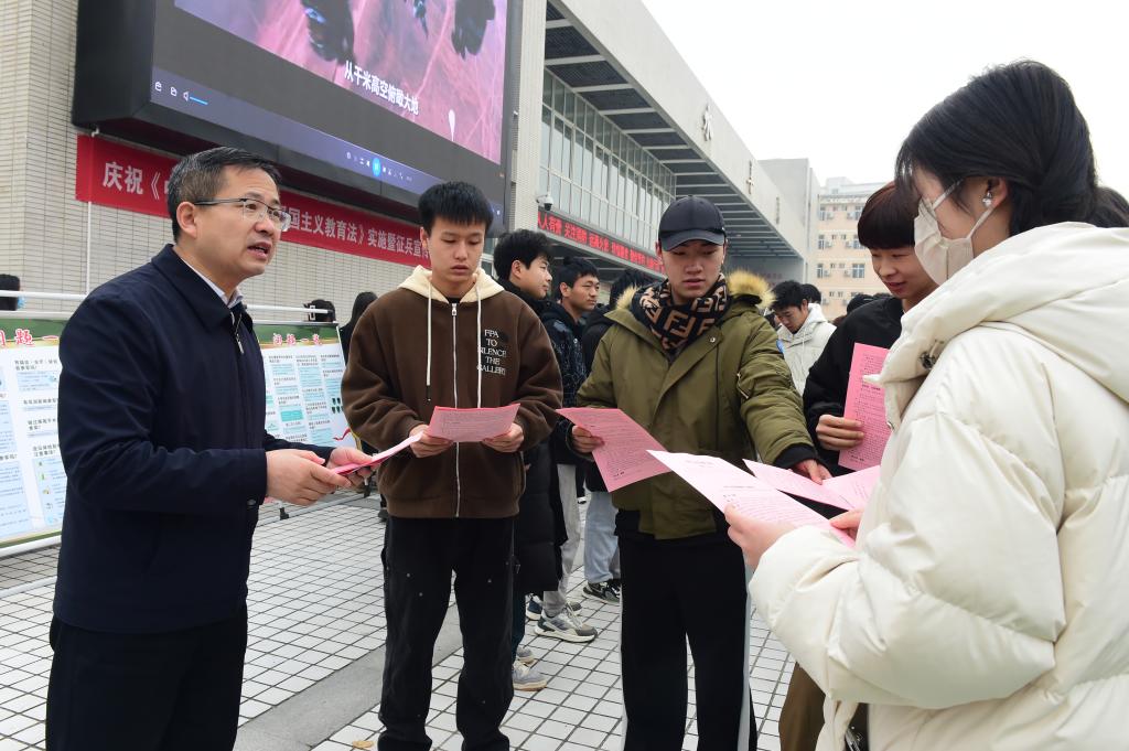 活动现场集中发放了《中华人民共和国爱国主义教育法》宣传单和征兵宣传资料,供师生深入了解学习。