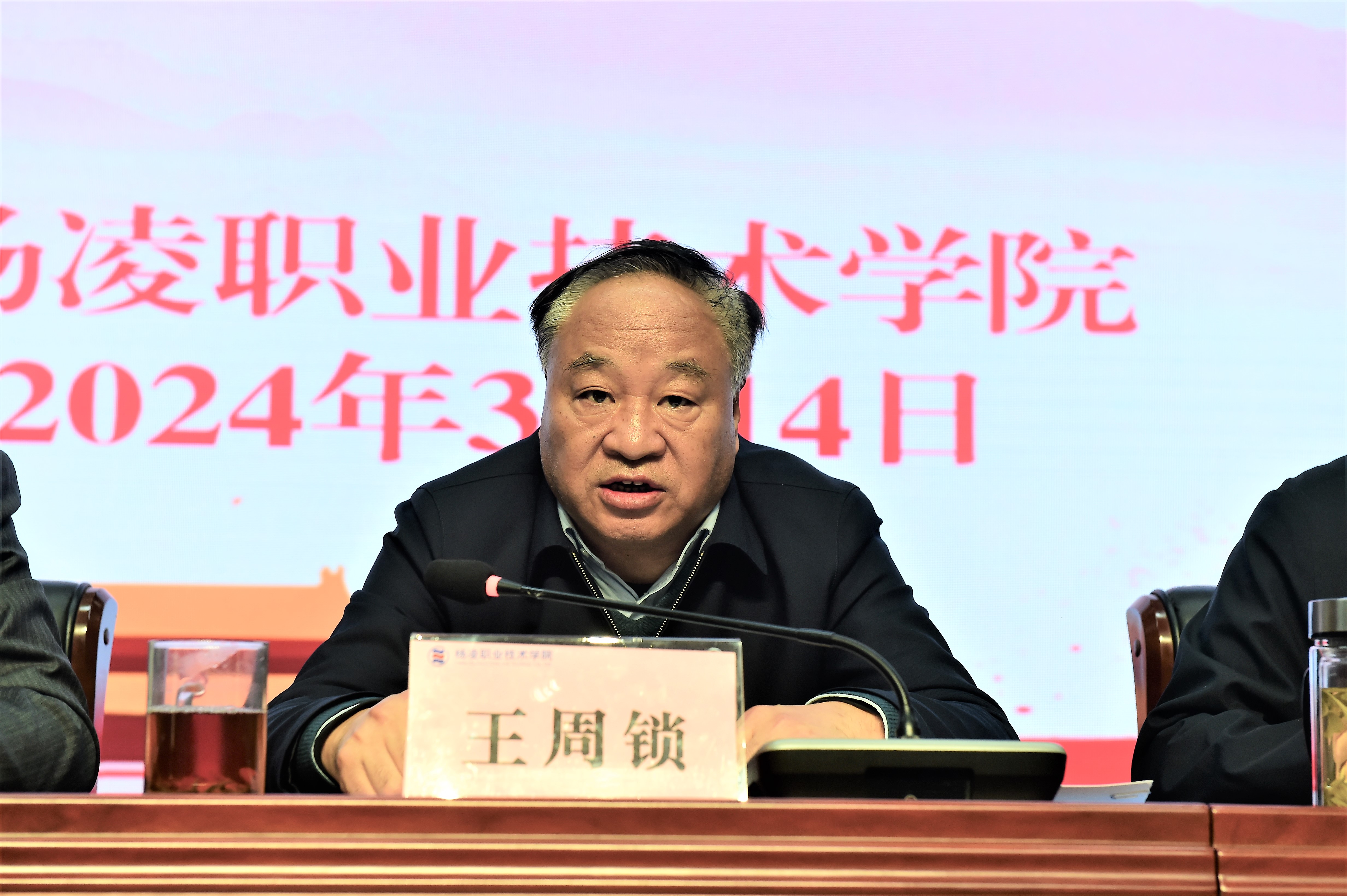 王周锁要求,要持续巩固拓展主题教育工作,坚持“学”字当头,在学思践悟中突出铸魂育人;坚持“行”字为要,在深察细剖中强化问题导向;坚持“干”字为先,在实干担当中推动高质量发展;坚持“正”字为基,在明规守纪中深化从严治党。要把习近平新时代中国特色社会主义思想转化为坚定理想、锤炼党性和指导实践、推动工作的强大力量,将焕发出来的学习、工作热情转化为攻坚克难、干事创业的强大动力,在学校双高、升本、新校区建设等重大转型发展的关键时刻,攻坚克难、踔厉奋进,以更强信心、更足干劲、更大作为书写杨职历史新辉煌,打开学校事业发展新天地,以昂扬奋进的姿态和实干兴校的优异成绩为建校九十华诞隆重献礼。