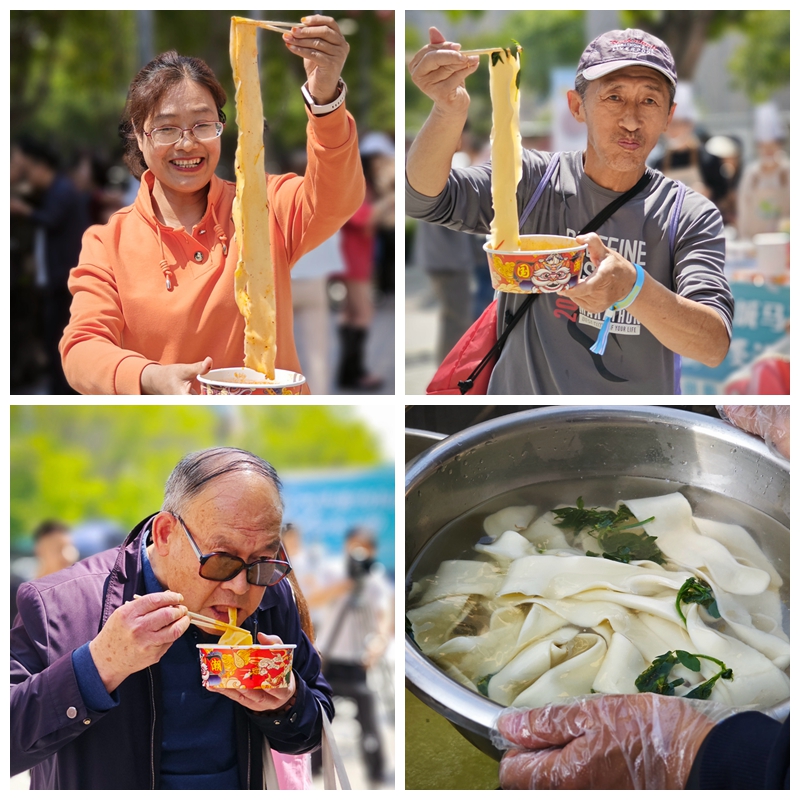 品鉴活动设置科技创新体验组国际合作体验组乡村振兴体验组示范推广体验组等四个组别,参赛选手中有高校师生、有社区居民、有蘸水面商家杨职代表队参加的是示范推广体验组活动中,我校师生把一块块面团,通过揉、擀、扯、甩的手法,加工成又宽又长、又薄又劲道的面条大家配合默契、技术到位、分工明确,完美展现了我校学生的风采。