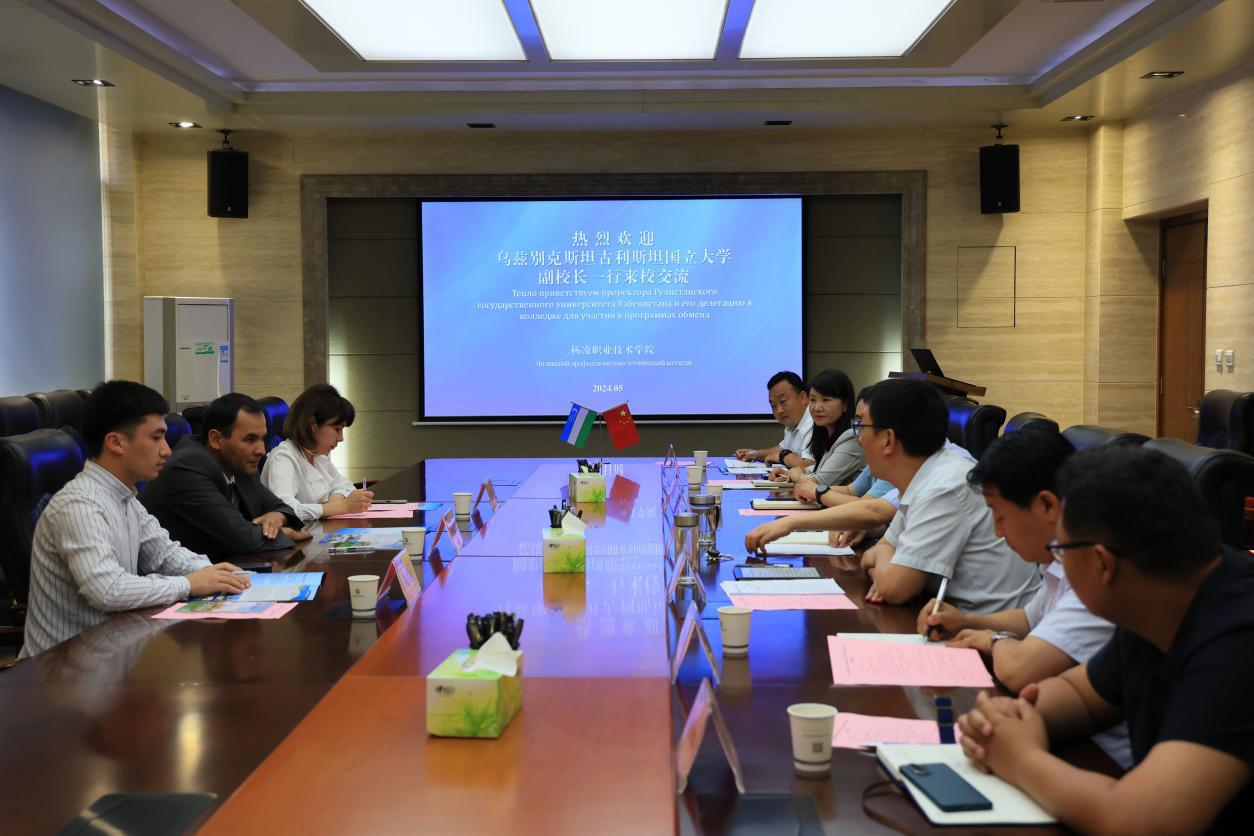 在我校交流访问期间,图尔迪巴耶夫一行参观了校史馆,以及水利工程学院、建筑工程学院、交通与测绘工程学院、生物工程学院、生态环境工程学院、动物工程学院、经济与贸易学院、旅游与管理学院教学设施和实训条件,并与相关二级学院负责人和专业教师进行了专业标准和技能标准的研讨交流。图尔迪巴耶夫向我校授予“乌兹别克斯坦古利斯坦国立大学——中国杨凌职业技术学院专业技能培训基地”牌子,并与我校签订“骨干教师专业技术培训项目”合作协议。仲伟周向古利斯坦国立大学两名教师颁发我校校外专家聘书。