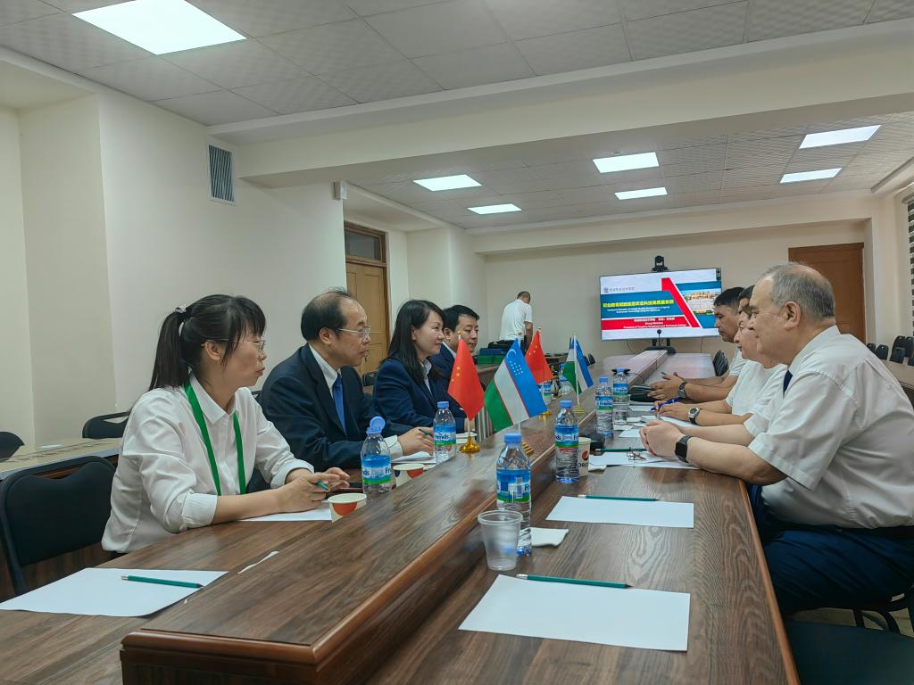 在乌兹别克斯坦塔什干国立农业大学,仲伟周参观了该校现代农业科研成果展,为“中国杨凌职业技术学院-乌兹别克斯坦塔什干国立农业大学专业技能培训基地”揭牌。双方围绕教育交流合作内容进行了深入讨论,并达成共识。