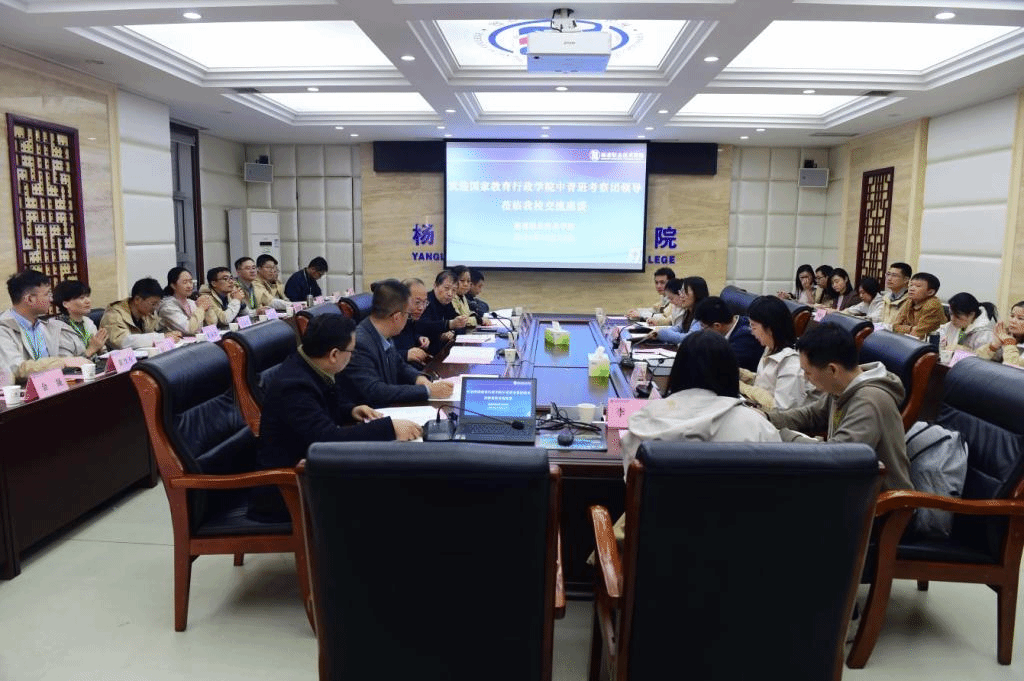 10月23日下午,国家教育行政学院浙江广东高校中青年干部教师培训班学员一行40余人来校调研。党委书记韩明军,校长仲伟周,副校长祝战斌陪同调研座谈。