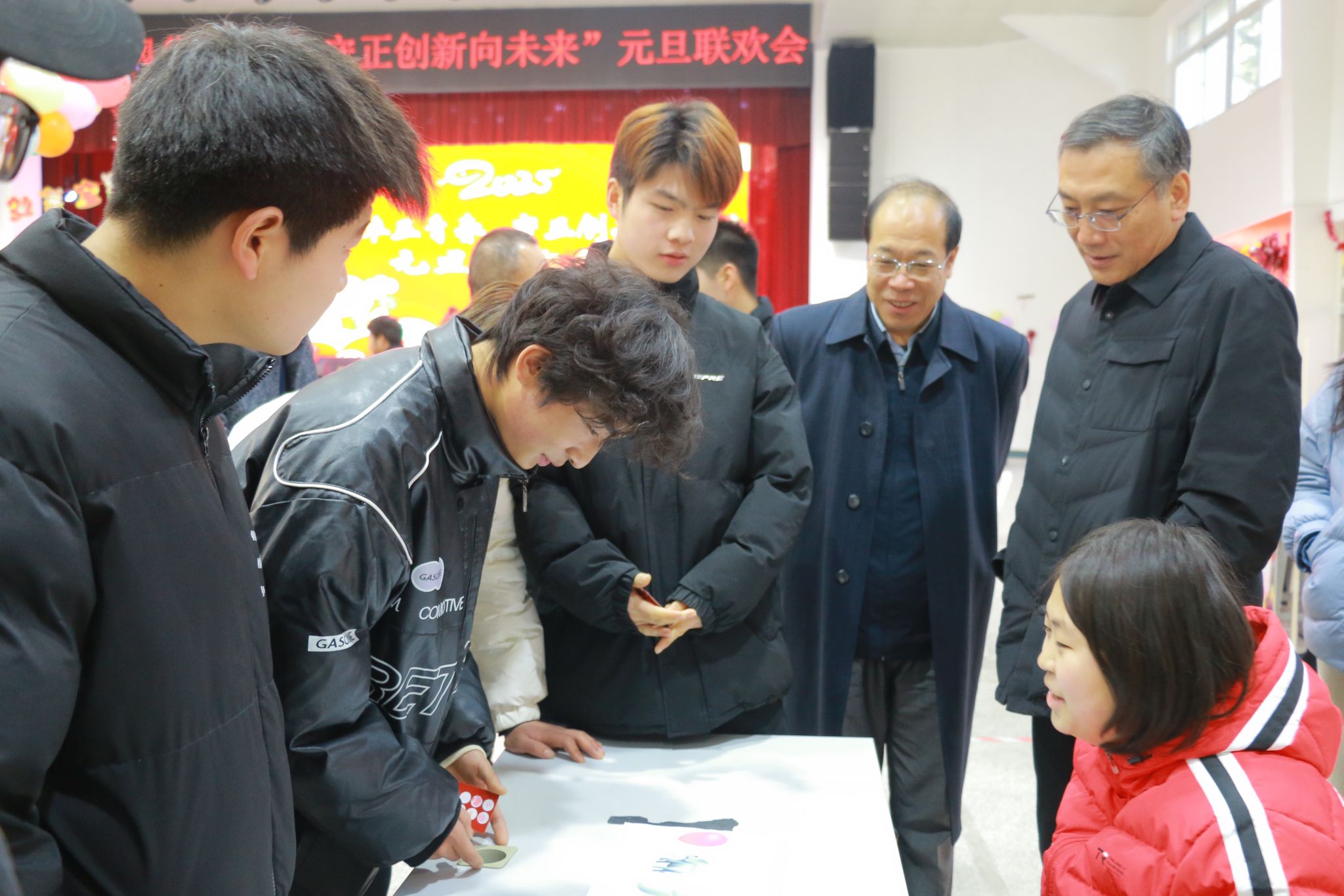 12月26日,在2025年元旦即将来临之际,为营造浓厚的节日气氛和积极向上、健康文明的校园文化氛围,由校团委主办,校学生会、校大学生艺术团承办的“九秩风华正青春,守正创新向未来”元旦联欢活动在南校区大学生活动中心顺利举办。活动期间,党委书记韩明军、校长仲伟周一行来到学生中间,和大家亲切交流。