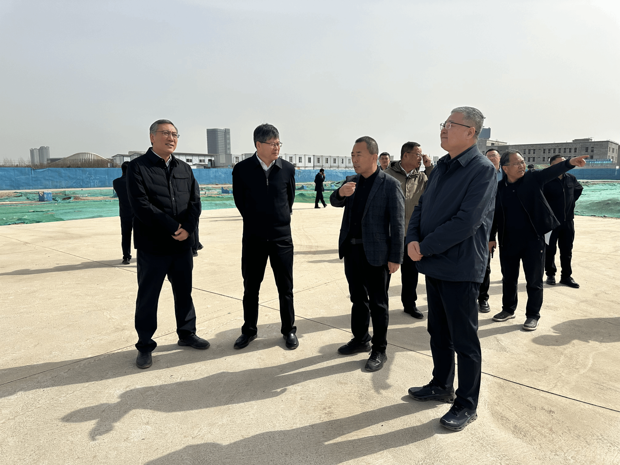 42午,杨凌示范区党工委书记史高领杨凌示范区管委会副主任刘一行来校,督察滨河校区项目扬尘管控情况。我校党委书记韩明军、副校长胡俊鹏,以及杨陵区、示范区相关单位部门负责陪同考察