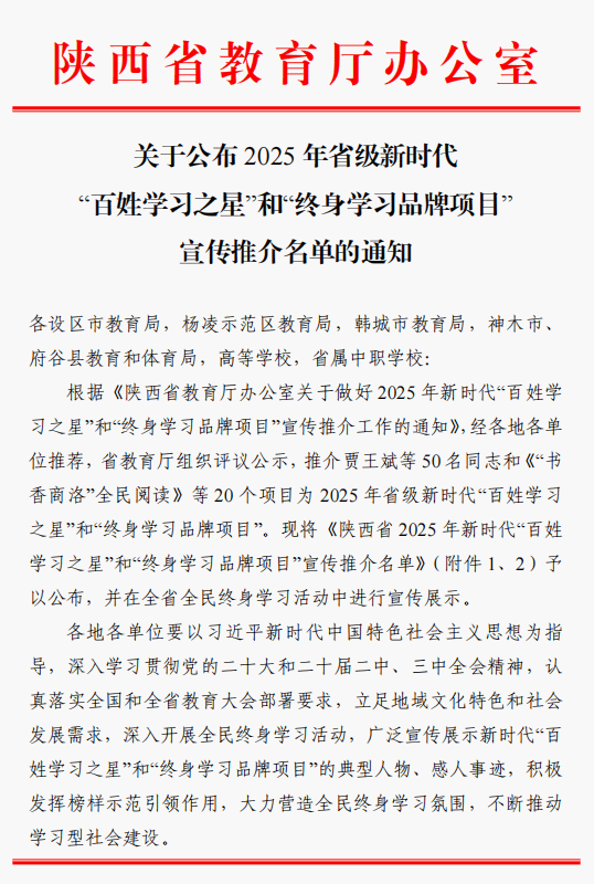 学校获评陕西省新时代终身学习品牌项目