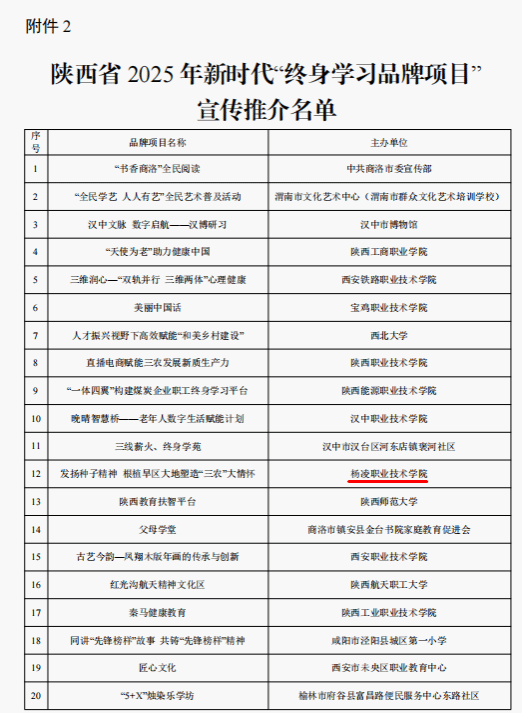 近日,省教育厅公布了2025年省级新时代“终身学习品牌项目”宣传推介名单,我校《发扬种子精神 根植旱区大地塑造“三农”大情怀》项目入选2025年全省新时代“终身学习品牌项目”。