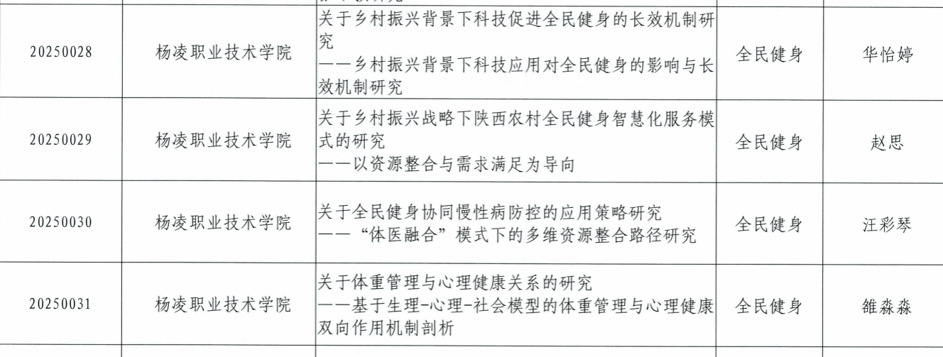 近日,省体育局公布了2025年常规课题立项结果,我校9项课题全部获批立项。期间,科技与教育研究处积极开展有组织科研工作,鼓励非体育专业的教师开展跨学科研究,强化申报指导,组织7项课题申报,实现了项目申报质量与立项数量的同步提升。