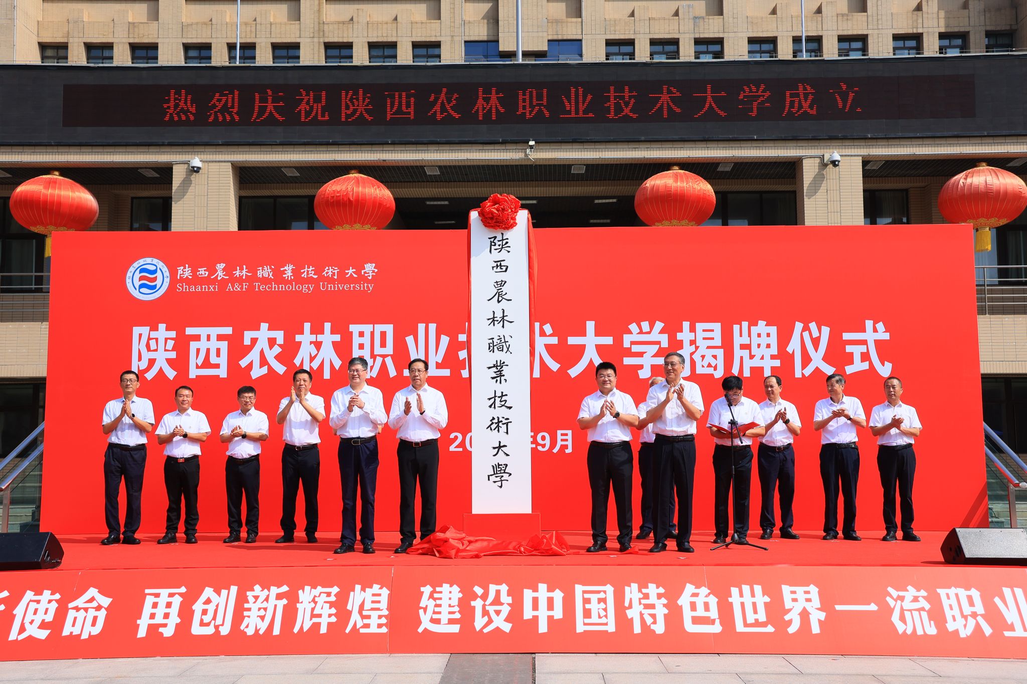 9月1日上午,陕西农林职业技术大学揭牌仪式举行,标志着陕西省首所全日制公办本科层次职业学校正式成立。