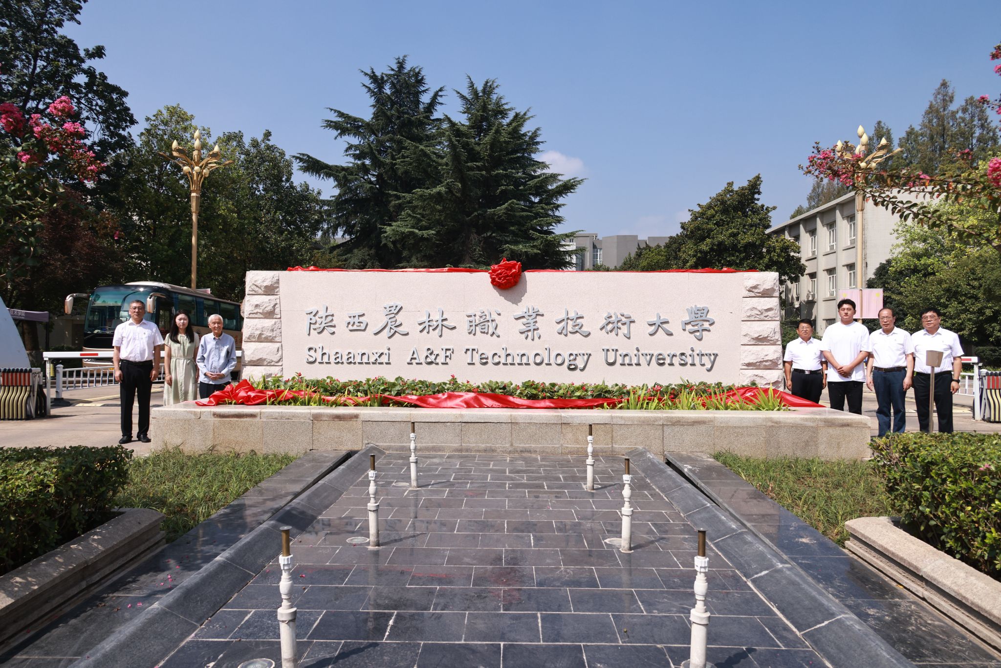 出席仪式领导与陕西农林职业技术大学校牌合影