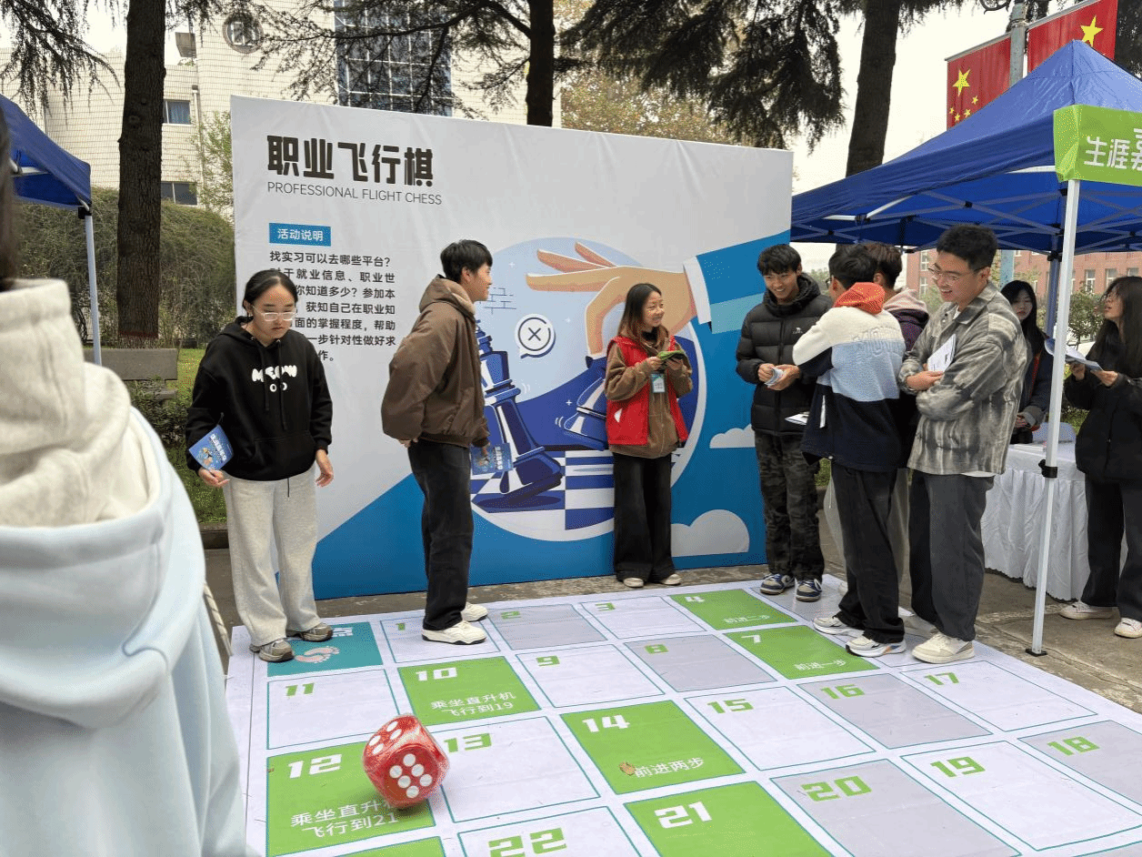 此次活动创新采用“沉浸式体验+趣味化探索”模式,精心搭建“动力激发站”“学职探索站”“自我发现站”“能力充电站”“为梦想前行站”五大主题功能站,涵盖“愿景指南针”“职业飞行棋”“天马行空”“专业大探秘”“发现我所爱”“人生指引器”“九州之旅”“急速60秒”“生涯启航”等11大趣味关卡。活动巧妙将专业知识寓教于乐,把复杂的生涯规划逻辑转化为可感知、可参与的游戏挑战,为学生搭建起探索自我、认知职业、规划未来的多元化平台。