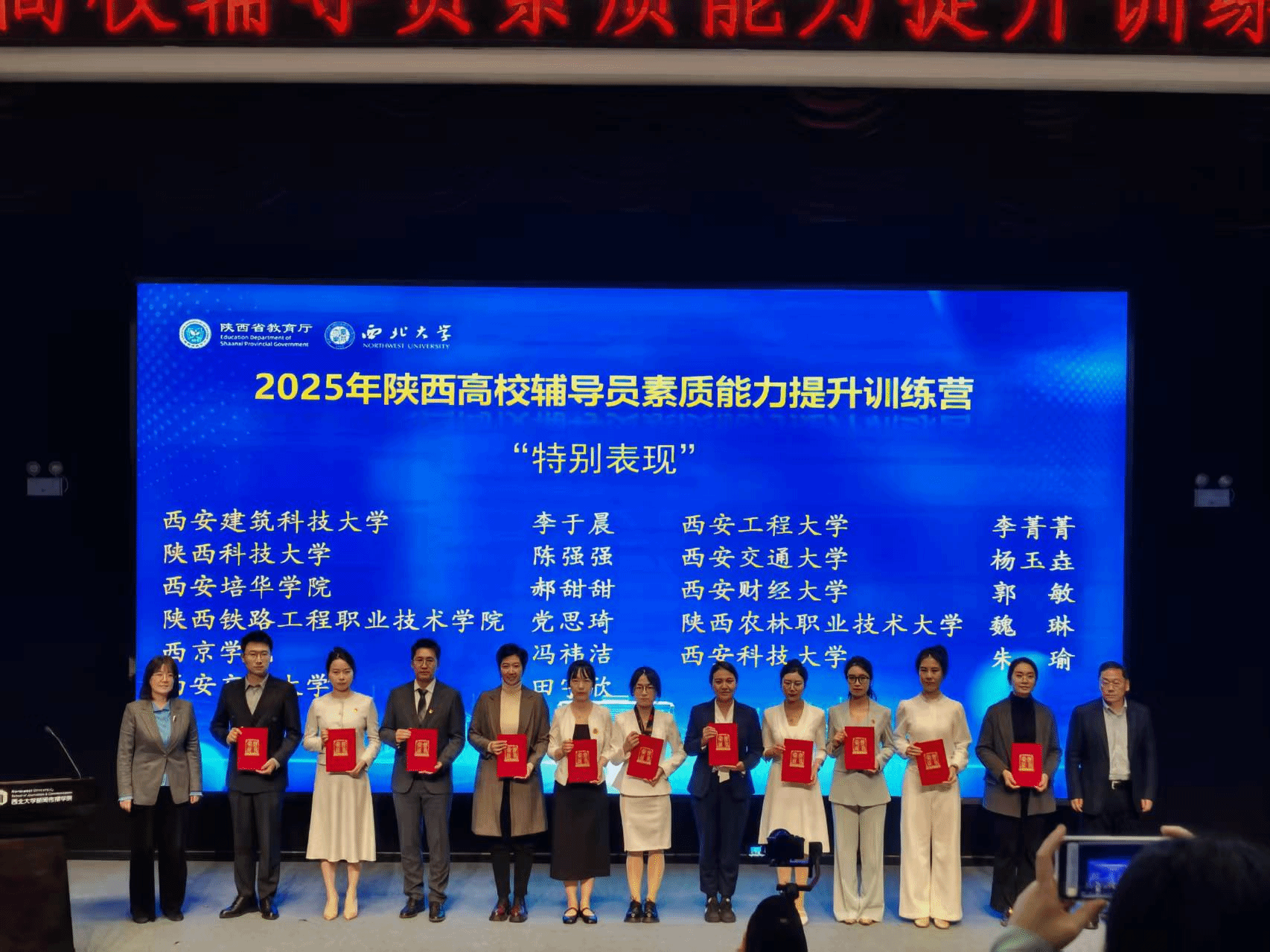 11月5日至7日,由省委教育工委、省教育厅主办的2025年陕西高校辅导员素质能力提升训练营在西北大学长安校区举办。我校建筑工程学院辅导员魏琳在此次训练营中凭借扎实的理论功底和出色的实务能力脱颖而出,获“特别表现”荣誉称号。