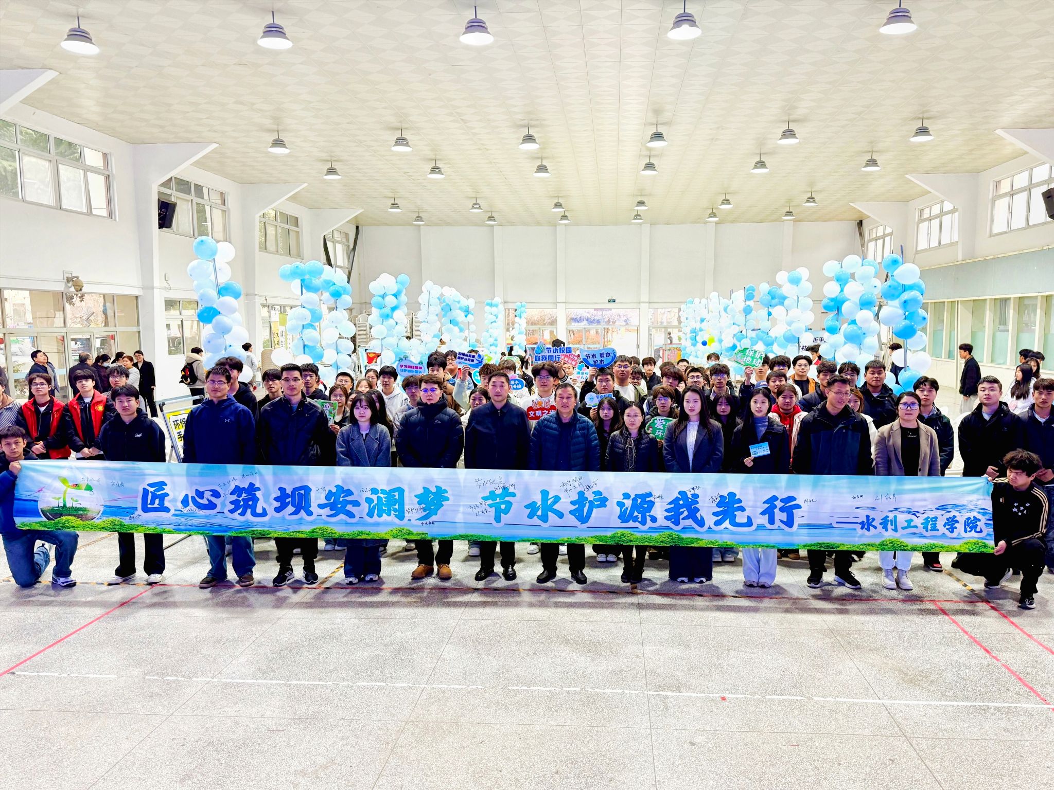 3月23日,水利工程学院在南校区举办2026年“世界水日 中国水周”主题宣传教育系列活动启动仪式暨互动游园会,活动以“匠心筑坝安澜梦,节水护源我先行”为主题,学院相关负责人及200余名师生代表参加。