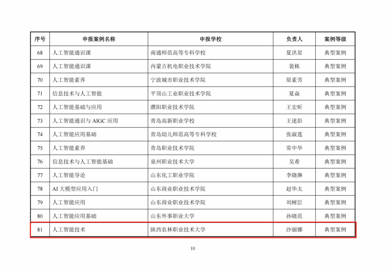 此次案例遴选旨在深入推进人工智能技术与职业教育教学改革深度融合,挖掘一批具有创新性、示范性、可推广性的教学案例,引领职业院校提升信息化教学水平和人才培养质量。经层层筛选、严格评审,学校两项案例凭借鲜明的特色、扎实的实践和显著的成效,成功入选公示名单,既是对学校教学改革成果的高度认可,也是对相关教师教学能力与创新精神的充分肯定。