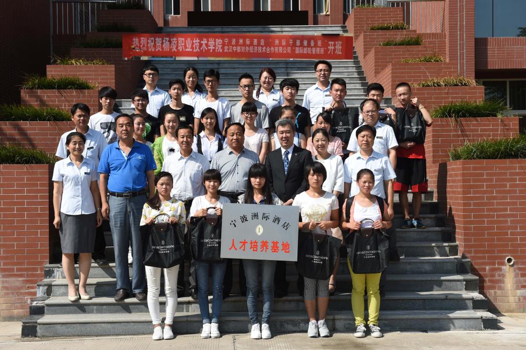 开班仪式上,王周锁与两家企业的负责人共同为“宁波洲际酒店人才培养基地”及“武汉中部对外经济技术合作有限公司人才培养基地” 揭牌。旅游与管理分院负责人汇报了两个订单班的组建情况。