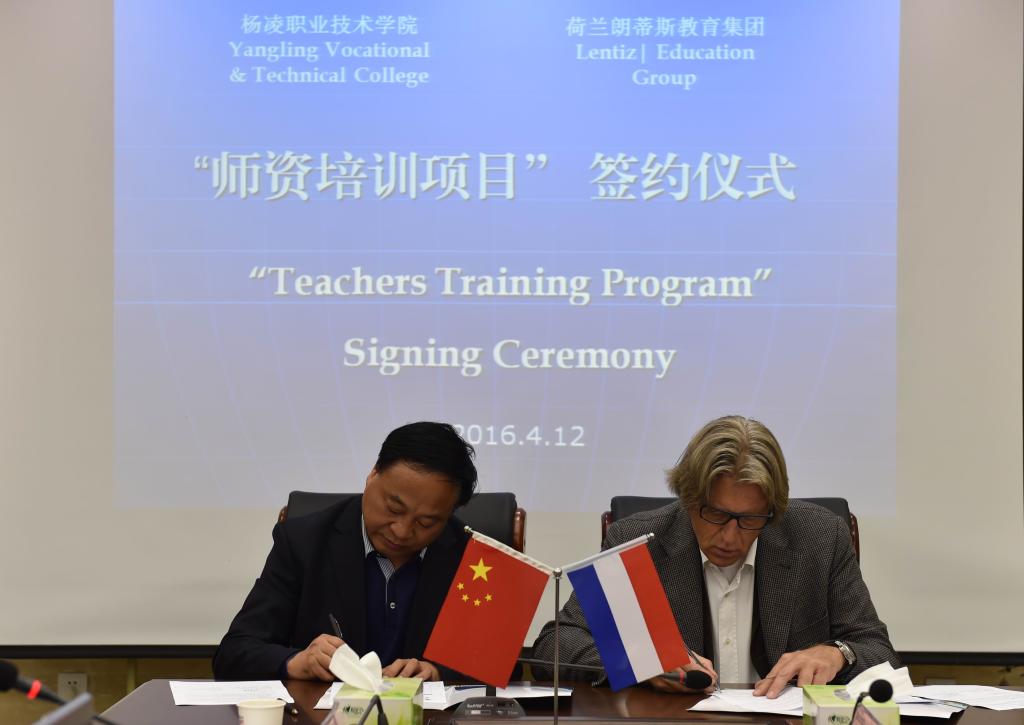 4月12日下午,双方举行了“师资培训项目”签约仪式。仪式上,王周锁与范康普博士签订了赴荷兰高级农业技术培训协议。副院长王晓地与荷方商讨了进一步扩大合作领域事宜,如未来可建设一个三方平台,邀请荷兰农业企业及院校与我院及杨凌示范区一起开展多类型、多层次的深度农业合作等。
