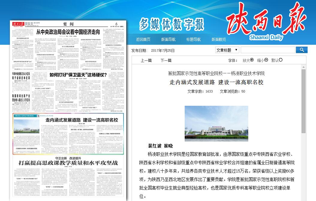 首批国家示范性高等职业院校——杨凌职业技术学院