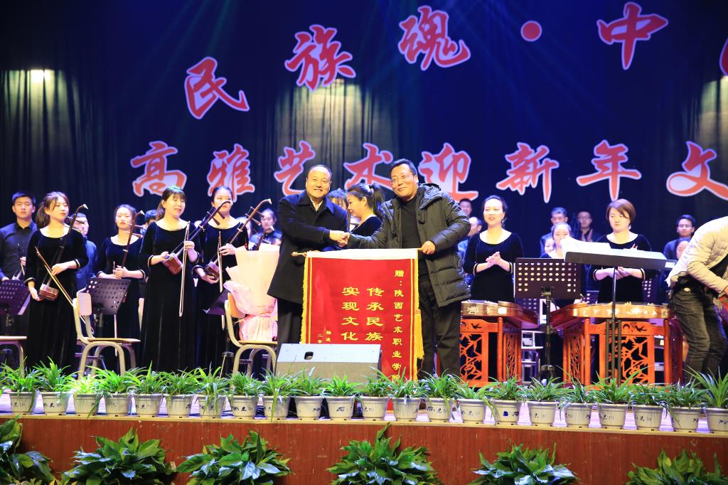 音乐会结束后,学院党委书记赵曼向陕西艺术职业学院赠送了锦旗。