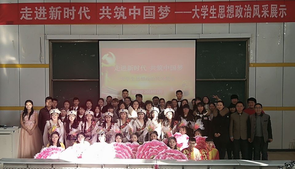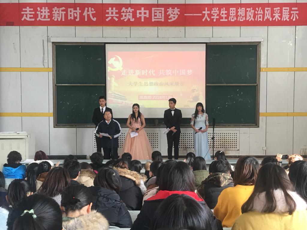 为丰富思想政治理论课的教育教学内容和方式,调动同学们的学习热情,提高思政课的教学效果,1月8日下午,思想政治理论课教学部在西校区台阶教室开展了一次学习十九大精神主题风采展示活动“走进新时代,构筑中国梦——大学生思想政治风采展示” ,全院二年级学生参加了活动。