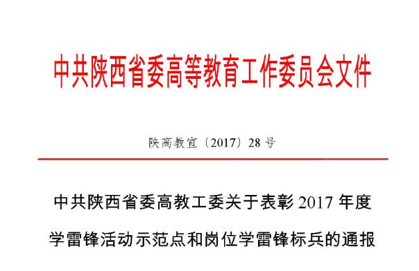 在省委高教工委关于2017年陕西高校志愿服务先进集体、先进个人评选表彰活动中,“生态环境工程分院武功镇罗家底小学支教助学项目”荣获“2017年陕西高校最佳志愿服务项目”,园林规划15031班韩晨同学被评为“2017年陕西高校最美志愿者”。
