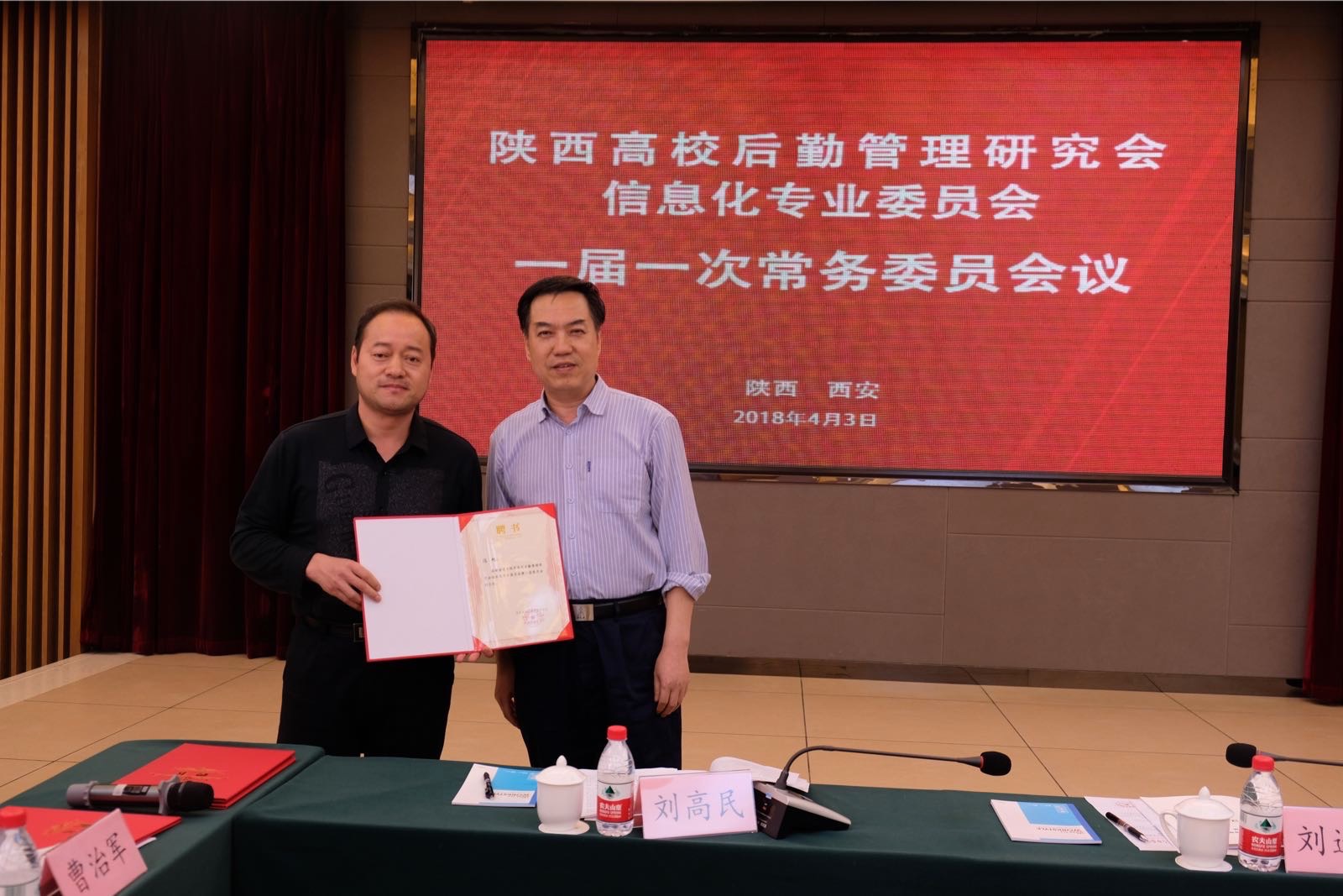 4月3日下午,陕西高校后勤管理研究会信息化专业委员会一届一次常务委员会会议在陕师大召开,会上,我院被确立为副主任单位,是副主任单位中唯一一家高职院校。后勤基建处处长冯旭被聘任为信息化专业委员会副主任。