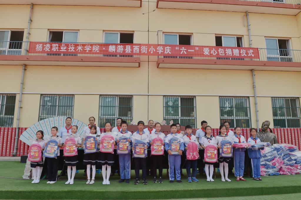 当天下午,赵曼一行还参加了麟游县西街小学庆六一、爱心包捐赠仪式,我院工会为麟游县贫困家庭小学生现场捐赠了100套书包、安全教育书籍和笔记本。