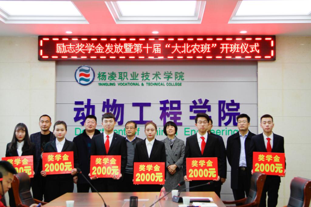 11月28日下午,我院与大北农集团在西校区林和楼举行励志奖学金发放暨第十届大北农班开班仪式,为动物工程分院15名优秀学生颁发了大北农励志奖学金。纪委书记刘粉莲,大北农集团陕西区总经理宋安石,招生就业处、动物工程分院主要负责人,以及全体订单班学生参加了奖学金颁发与开班仪式。