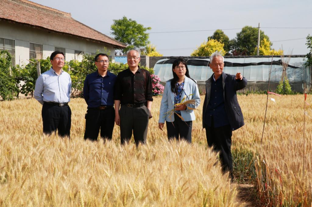 5月30日上午,党委书记陈宁,党委委员、组织部部长齐晓军,以及党政办公室、科研推广处、生物工程分院等相关负责人一行,赴豆村农场观摩著名小麦育种专家、我院研究员赵瑜培育的优质强筋高产小麦新品种武农6号、武农611和大穗大粒优质高产小麦新品种武农981。