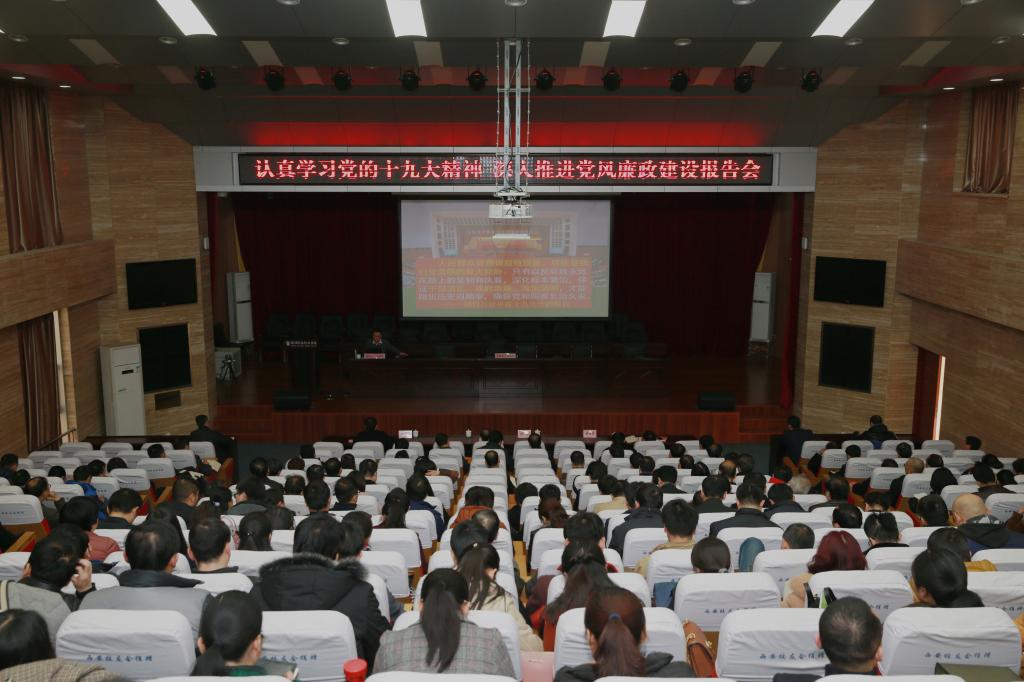 科级以上干部,各党总支委员、党支部书记,副高以上职称人员,党政管理干部和思政课教师参加了报告会。