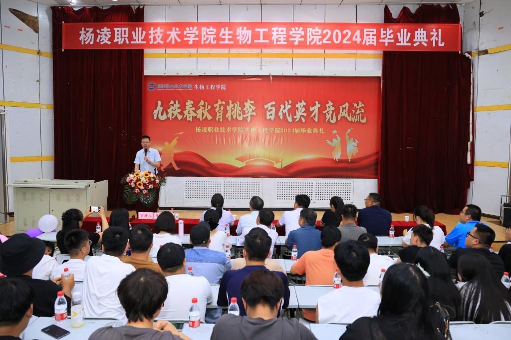 近日,生物工程学院2024届毕业典礼在西校区举行。副校长张朝晖出席毕业典礼。党委学工部、教务处、生物工程学院负责人,生物工程学院各教研室主任、副主任,各毕业班班主任、全体辅导员和2024届全体毕业生参加活动。