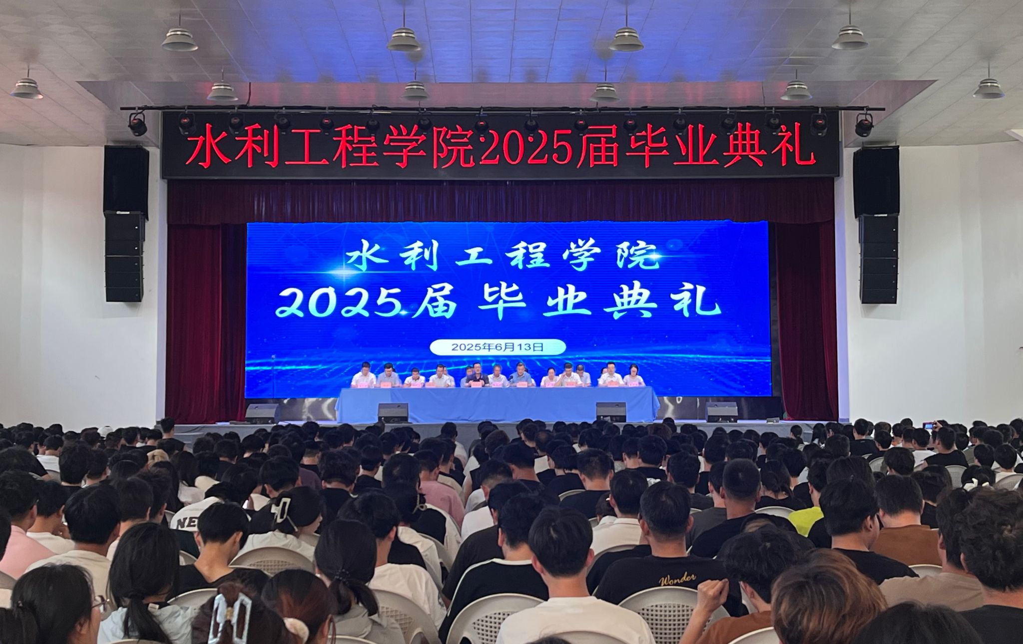 6月13日上午,水利工程学院2025届毕业典礼在南校区一卡通中心举行。副校长蒋平江出席。水利工程学院负责人,两办主任、专业带头人、教研室主任、教师代表、毕业班班主任、辅导员和毕业生共计900余人参加。