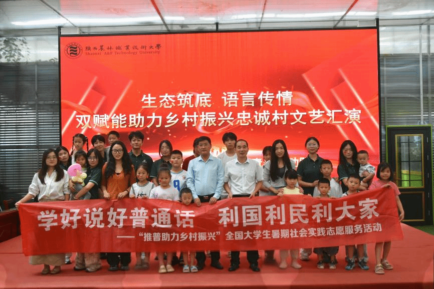 用活动传承“五位一体”的文化基因谱。青春队立足乡村文化需求,开展“普通话小讲堂”专题讲座;组织师生创作乡村振兴主题墙体彩绘;针对留守儿童实施“语润童心”计划;下乡文艺汇演以歌舞、朗诵等节目丰富群众生活,全国劳模、忠诚村党支部书记、村委会主任、天瑞塬公司总经理刘瑞红作为特邀嘉宾。