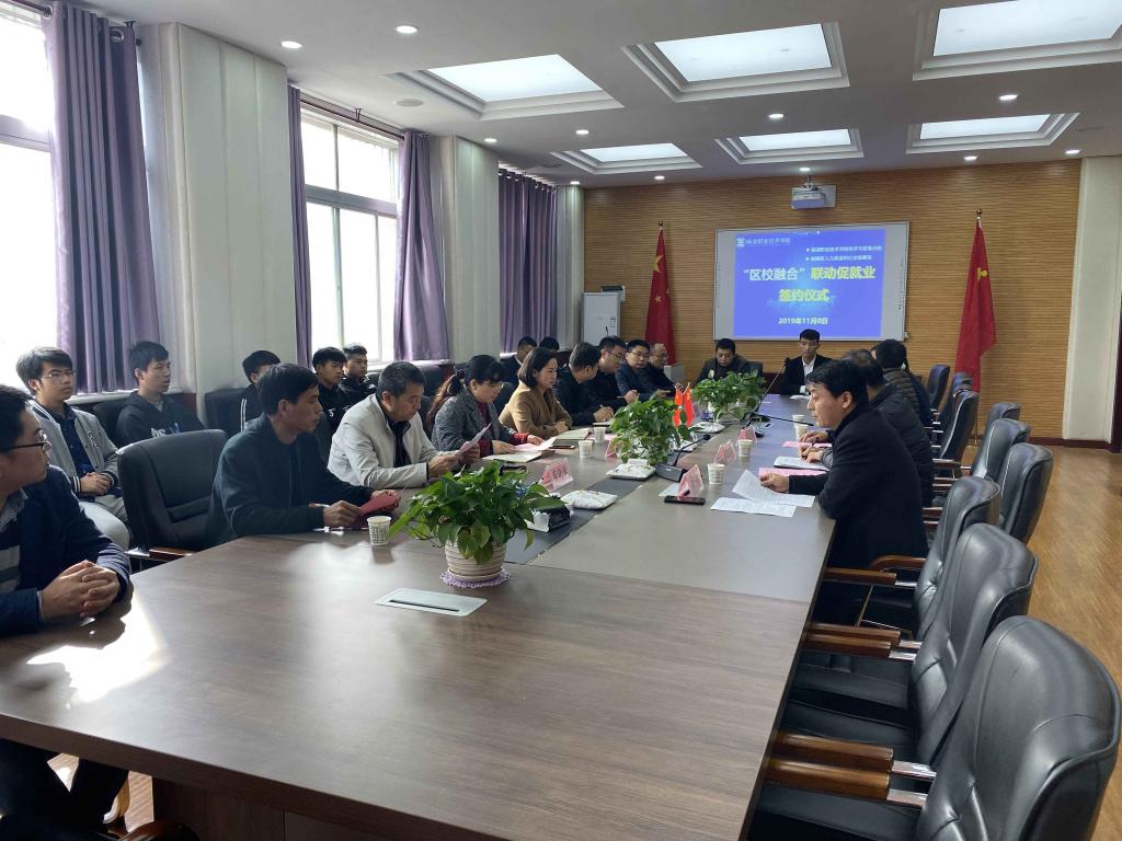 11月8日下午,“区校融合”联动促就业合作签约仪式在经济与贸易分院举行。经济与贸易分院负责人、杨陵区人力资源与社会保障局负责人、人社局相关领导、创业导师代表及双创协会学生共50余人出席了签约仪式。