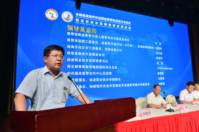 校企携手同筑梦,双赢共荣创辉煌。6月13日,中国杨凌现代农业职业教育集团第三次会议暨西北农林水高职教育发展峰会在杨凌国际会展中心隆重举行。陕西省委高教工委委员、省教育厅副厅长、省高教局副局长刘建林出席大会并讲话。
