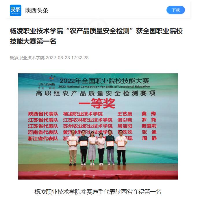 上一条:【西部网】杨凌职业技术学院“农产品质量安全检测”获全国职业院校技能大赛第一名
