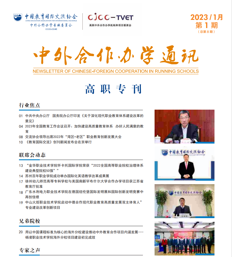 《中外合作办学通讯》是国内中外合作办学的信息交流共享平台,全面展示中外合作办学院校发展动态,分享优秀办学经验,传递前沿动态,凝聚发展共识。
