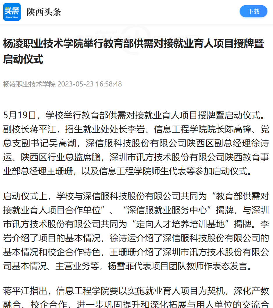 【陕西头条】杨凌职业技术学院举行教育部供需对接就业育人项目授牌暨启动仪式