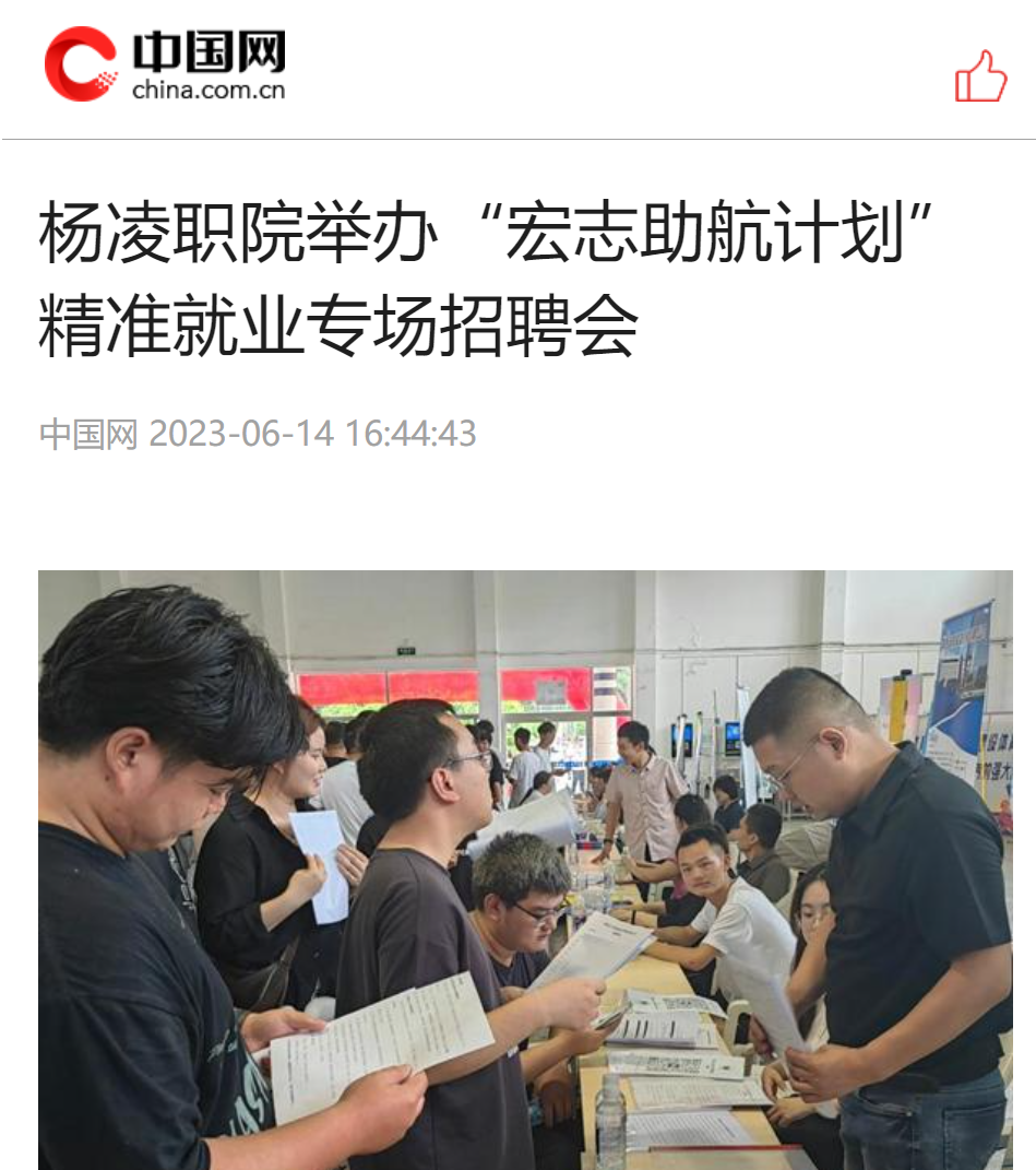 下一条:【陕西头条】杨凌职业技术学院举办“宏志助航计划”精准就业专场招聘会