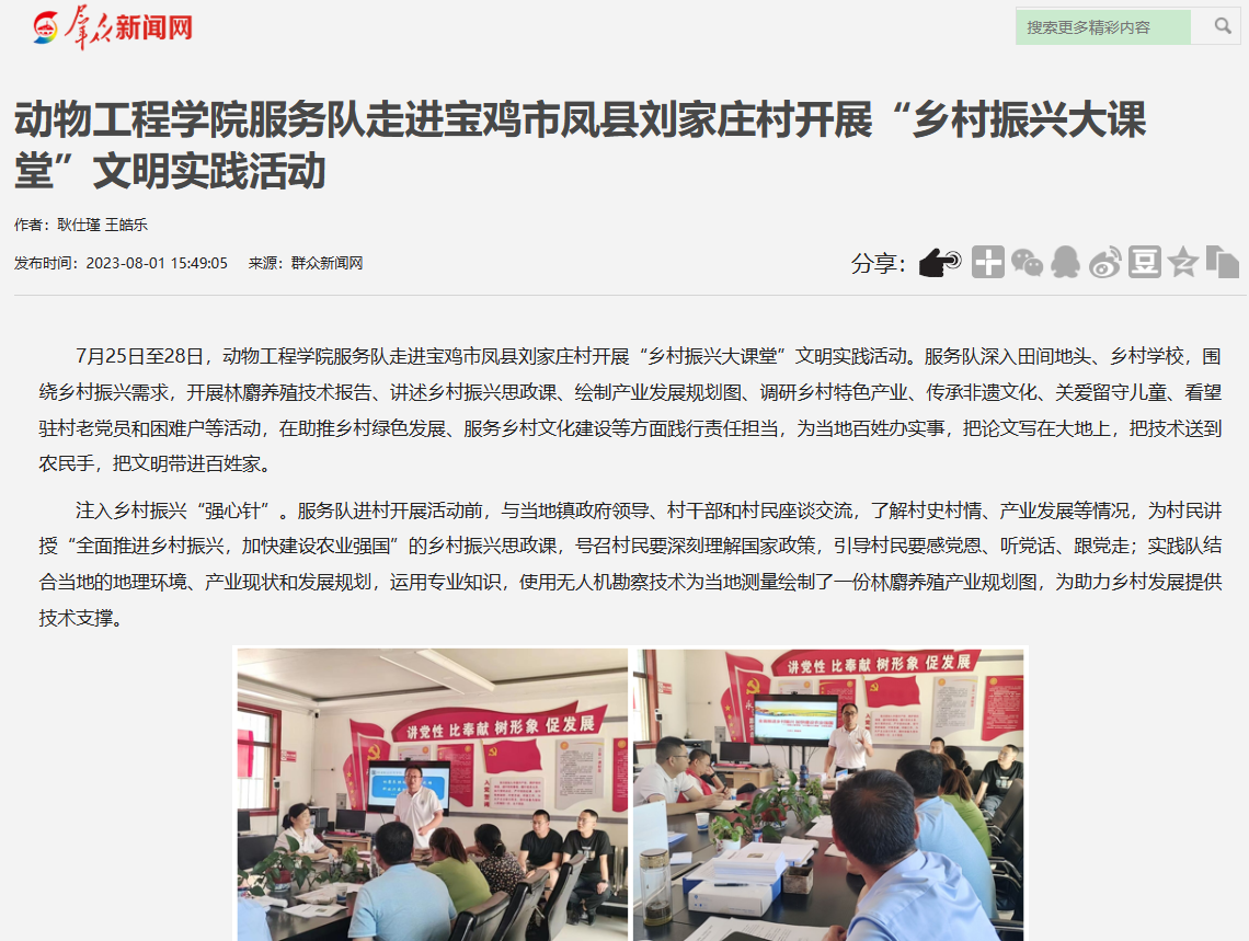 【群众新闻网】动物工程学院服务队走进宝鸡市凤县刘家庄村开展“乡村振兴大课堂”文明实践活动