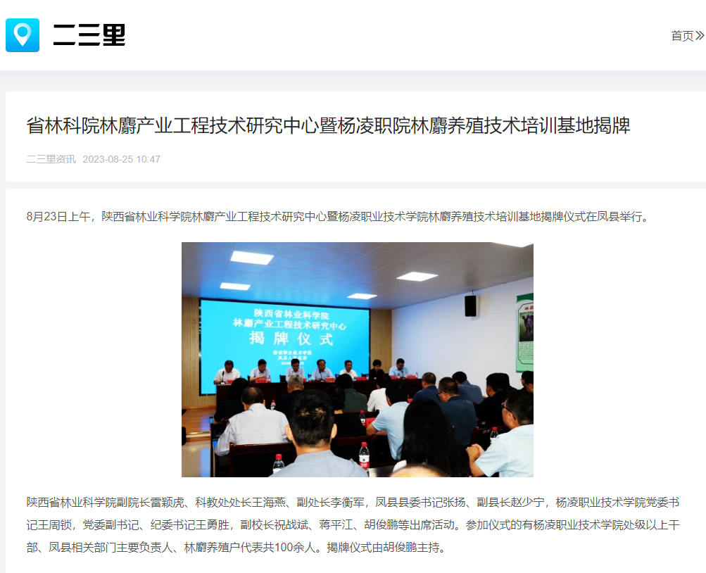 8月23日上午,陕西省林业科学院林麝产业工程技术研究中心暨杨凌职业技术学院林麝养殖技术培训基地揭牌仪式在凤县举行。