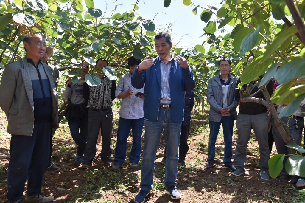 杨凌职业技术学院教授马志峰为周至县果农讲解猕猴桃管理技术