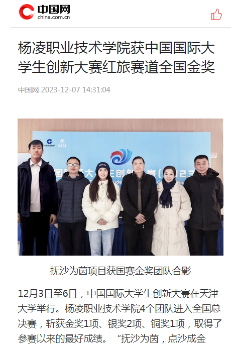 【中国网】杨凌职业技术学院获中国国际大学生创新大赛红旅赛道全国金奖