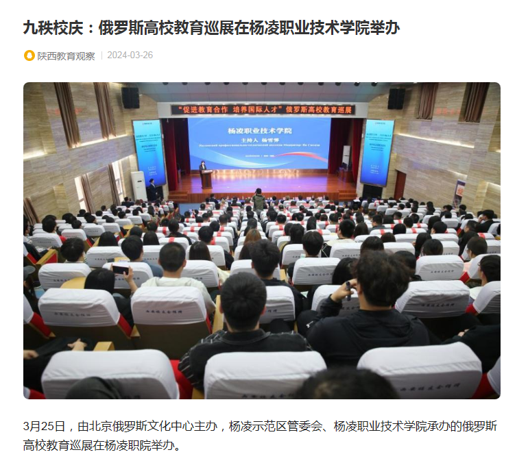 【陕西教育观察】九秩校庆:俄罗斯高校教育巡展在杨凌职业技术学院举办
