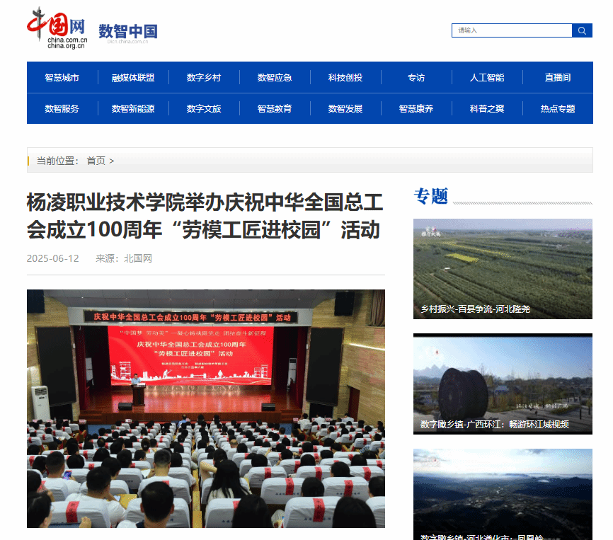 【中国网】杨凌职业技术学院举办庆祝中华全国总工会成立100周年“劳模工匠进校园”活动