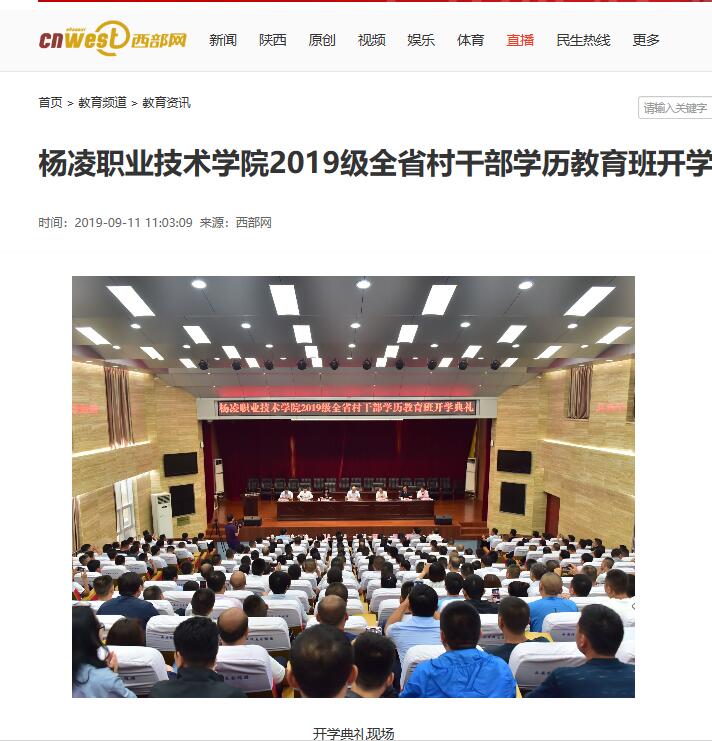 西部网讯 9月10日,杨凌职业技术学院2019级全省村干部学历教育班开学典礼在该院南校区思辨堂举行。2019级全省村干部学历教育班277名学员、2019级洛川村干部学历教育班48名学员和2019级杨陵村干部学历教育班33名学员参加了开学典礼。