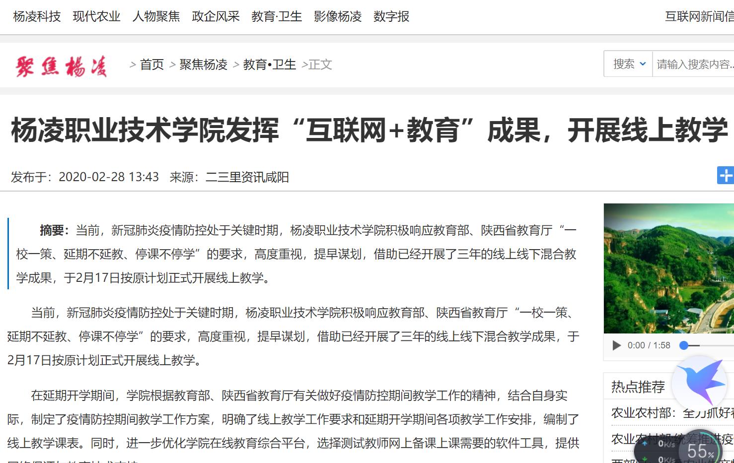 【中国农科新闻网】杨凌职业技术学院发挥“互联网+教育”成果,开展线上教学